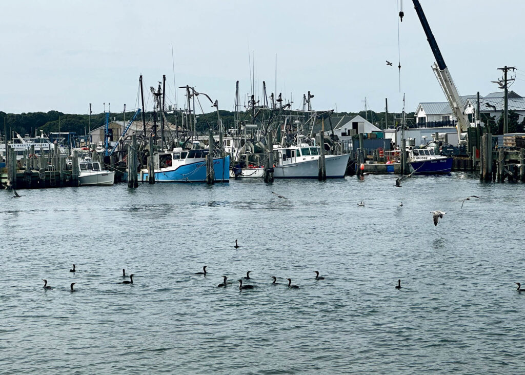 Montauk Docks with cormorants waiting for a treat. Photo Credit: Bonnie Brady.